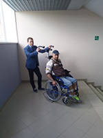 Зубко Роман Николаевич первым делом продемонстрировал студентам и присутствующим гостям специальное техническое средство под «ступенькоход», с помощью которого лица с ОВЗ могут подниматься по ступенькам. Ступенькоход передан в Киришский центр социального обслуживания для использования технологии «Домой без преград». В рамках технологии инвалиды, проживающие на верхних этажах многоквартирных домов, могут вызвать сотрудника центра со ступенькоходом для получения помощи при спуске и подъеме по лестничным маршам подъездов.